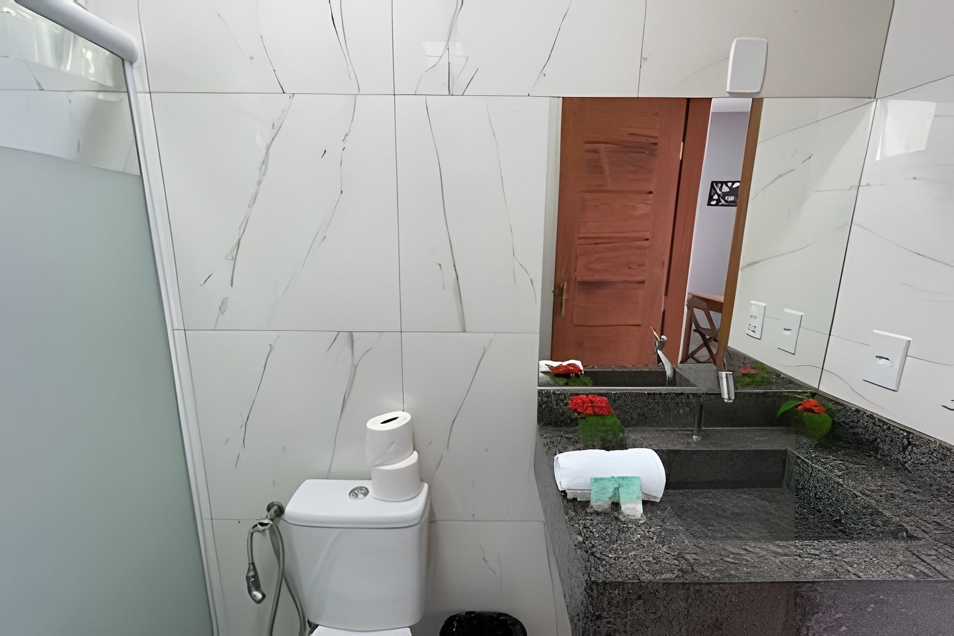 Bem-vindos! ALÉM DOS SONHOS V é um apartamento muito confortável no andar superior com cozinha e quarto com 1 cama de casal, ar-condicionado, banheiro privativo. Localização excelente e silenciosa. 30mts da Praça Principal e 5min da 1a praia. Perto da Natureza Fornecemos enxoval completo de cama e banho e cuidamos da sua reserva do começo ao fim. *possível adicionar café da manhã à parte *temos parcerias com agencias locais para passeios e traslados *NOVO: Colocamos SMART TV :)